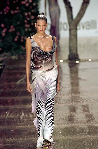 Roberto Cavalli S/S 2000 Black Roses and Zebra Maxi dress