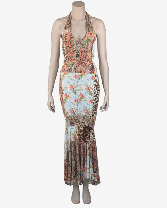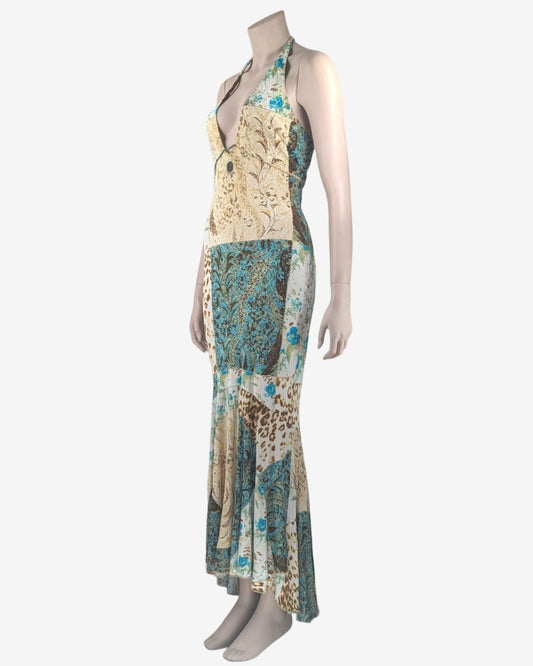 Roberto Cavalli Class Floral Patchwork Halter Maxi Dress