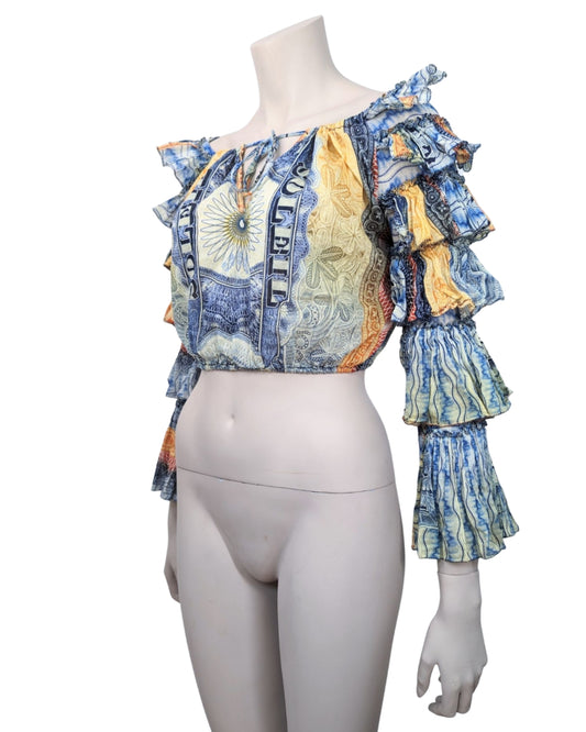 Jean Paul Gaultier Money Print Multi-Rufles Crop Top