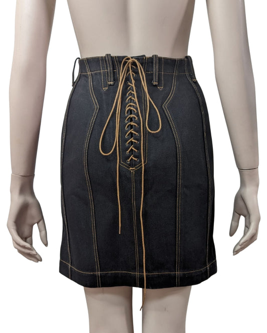 Alaïa by Azzedine Alaïa S/S 1991 High Waist Lace-up Denim Skirt