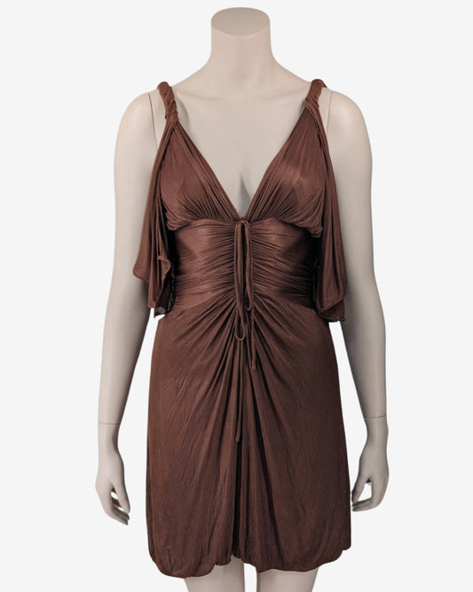 Gucci by Tom Ford S/S 2003 Draped Brown Mini Dress