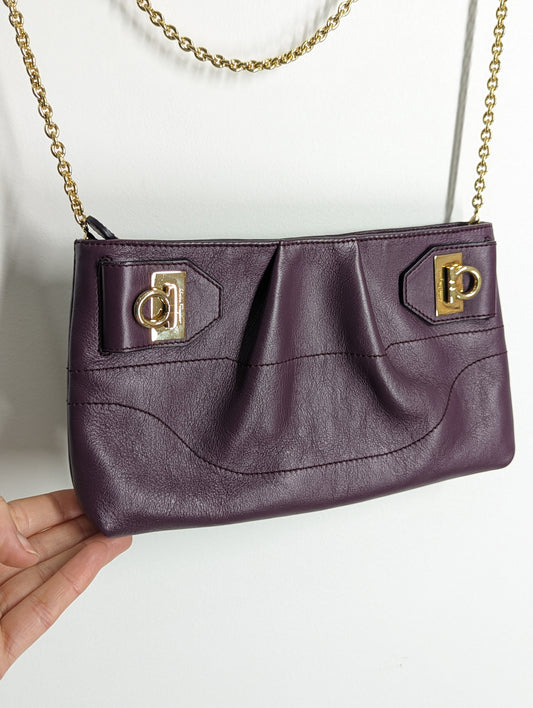 Salvatore Ferragamo Shoulder Pochette in Burgundy Leather
