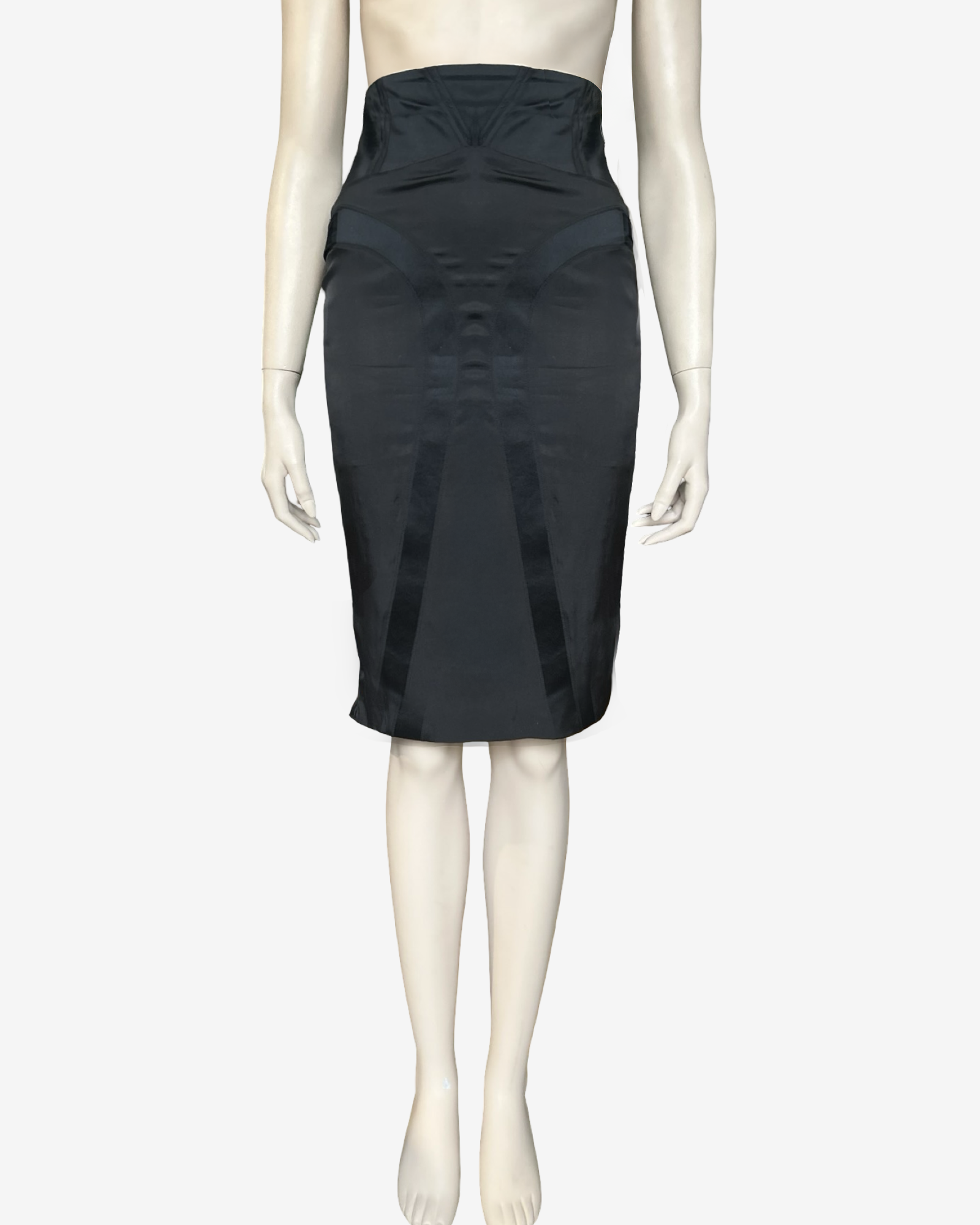 A quintessential example of Tom Ford’s sensual yet sophisticated vision for early-2000s Gucci, this silk skirt captures the era’s bold glamour and fluid elegance.