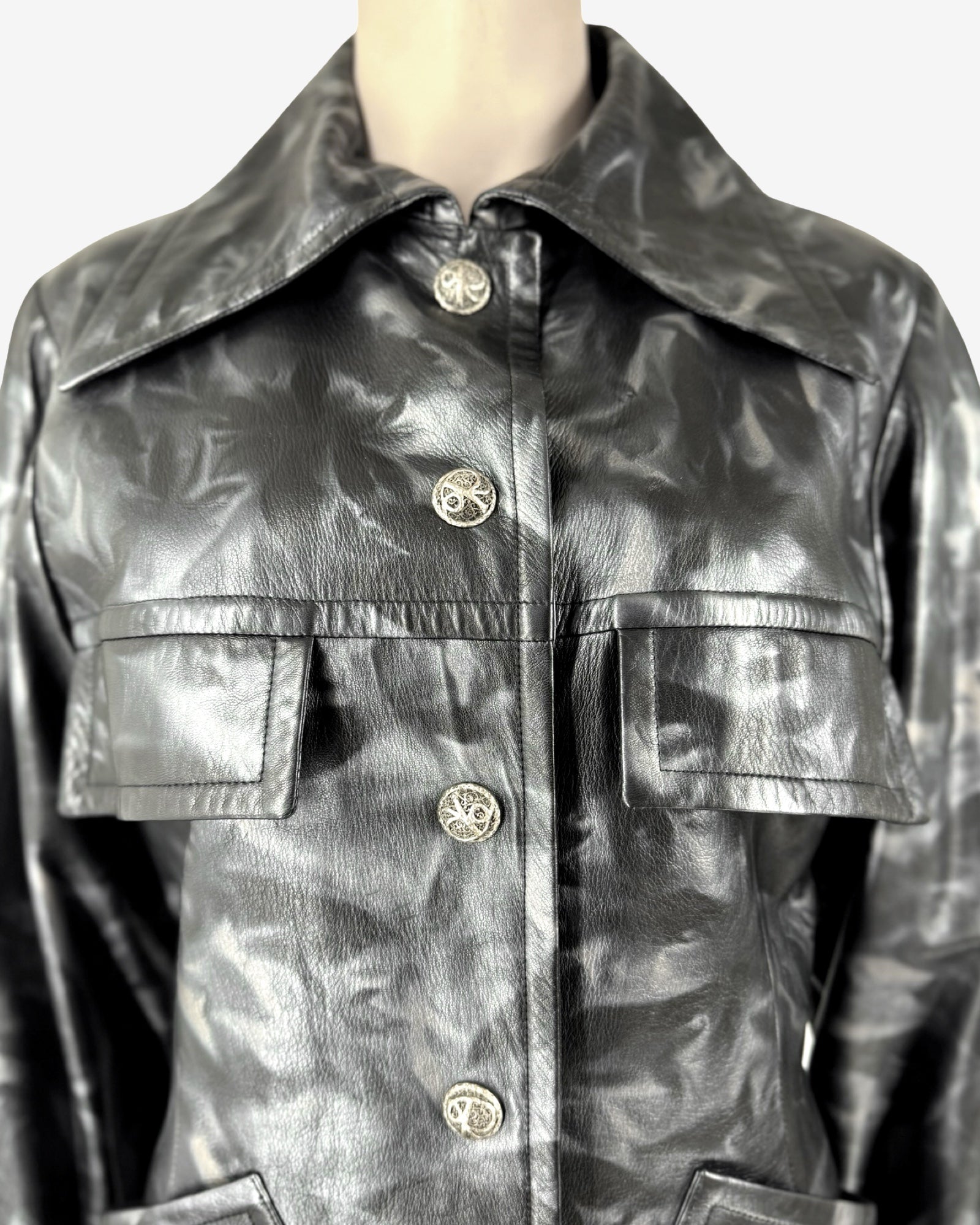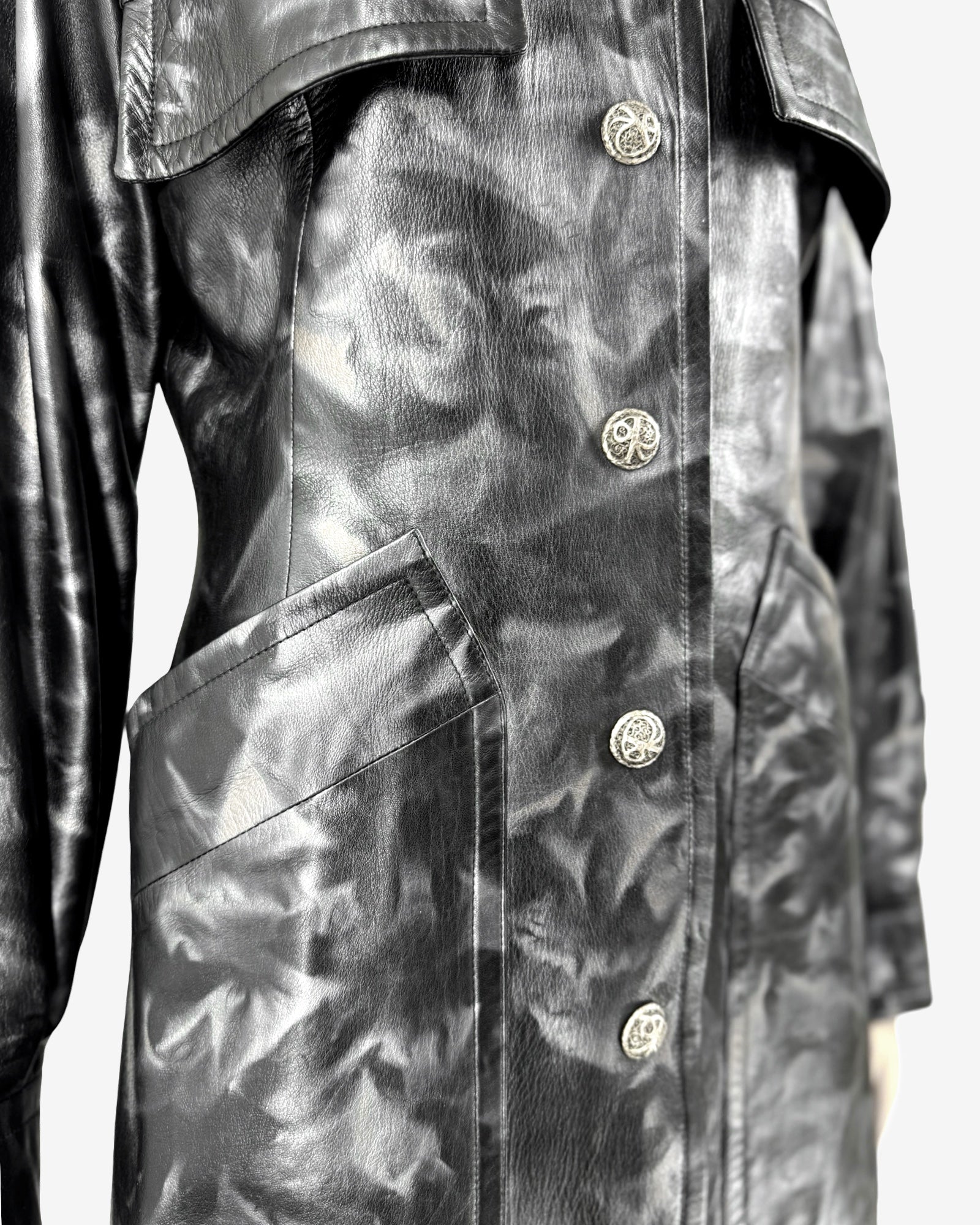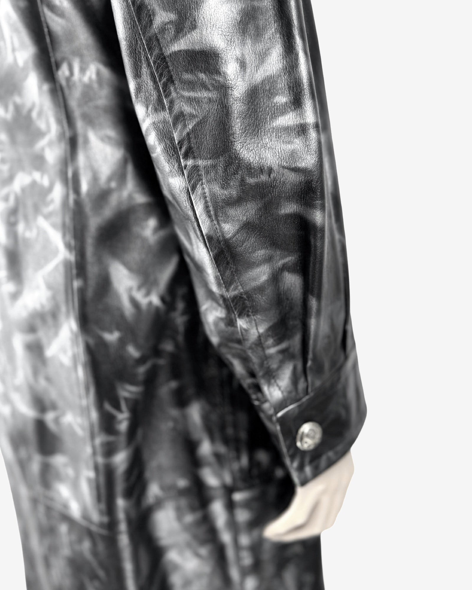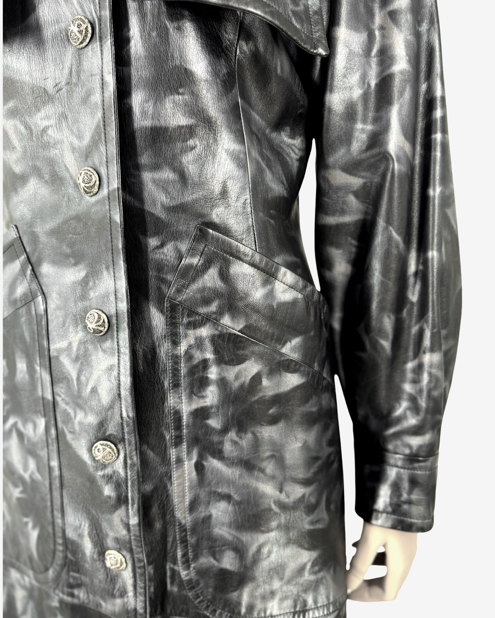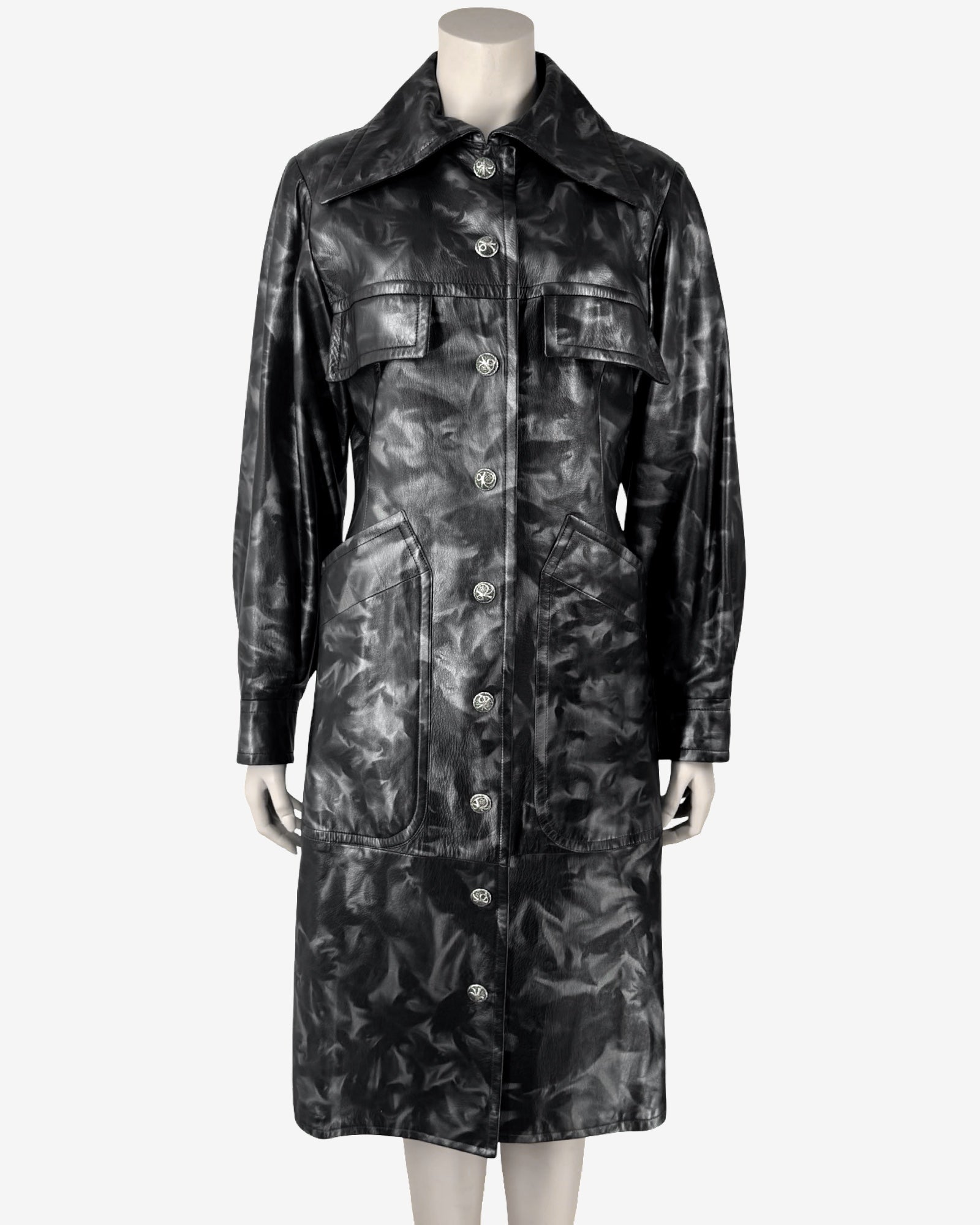 Vintage Leather Black and Grey Marbled Pattern Coat
